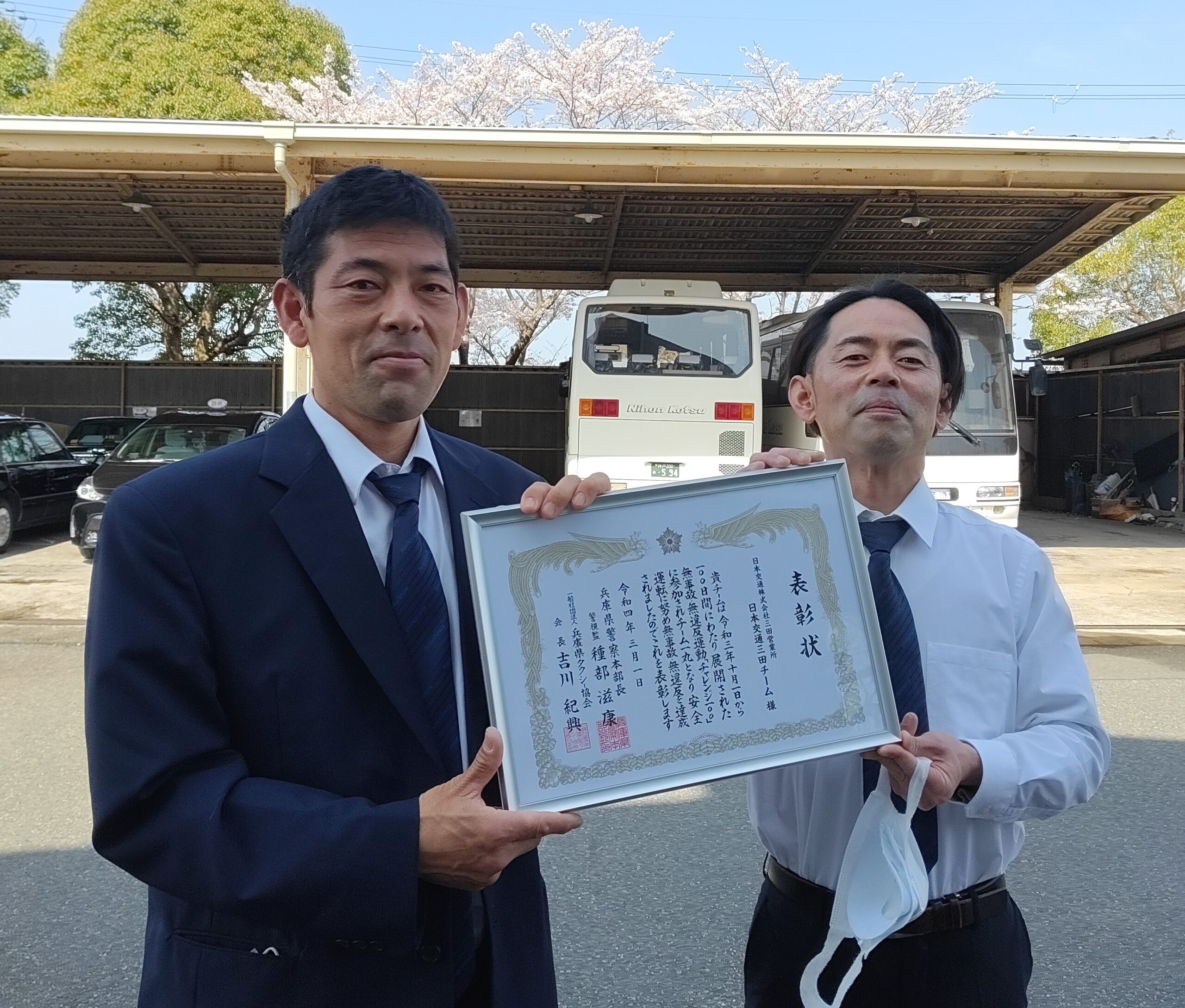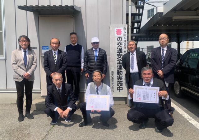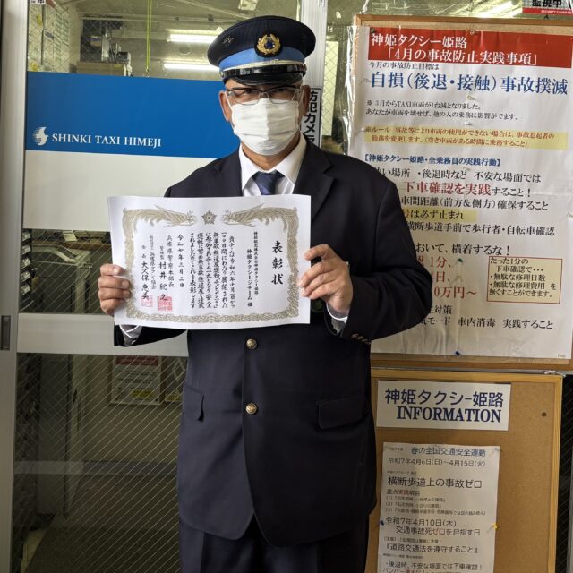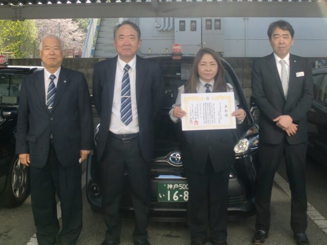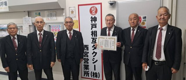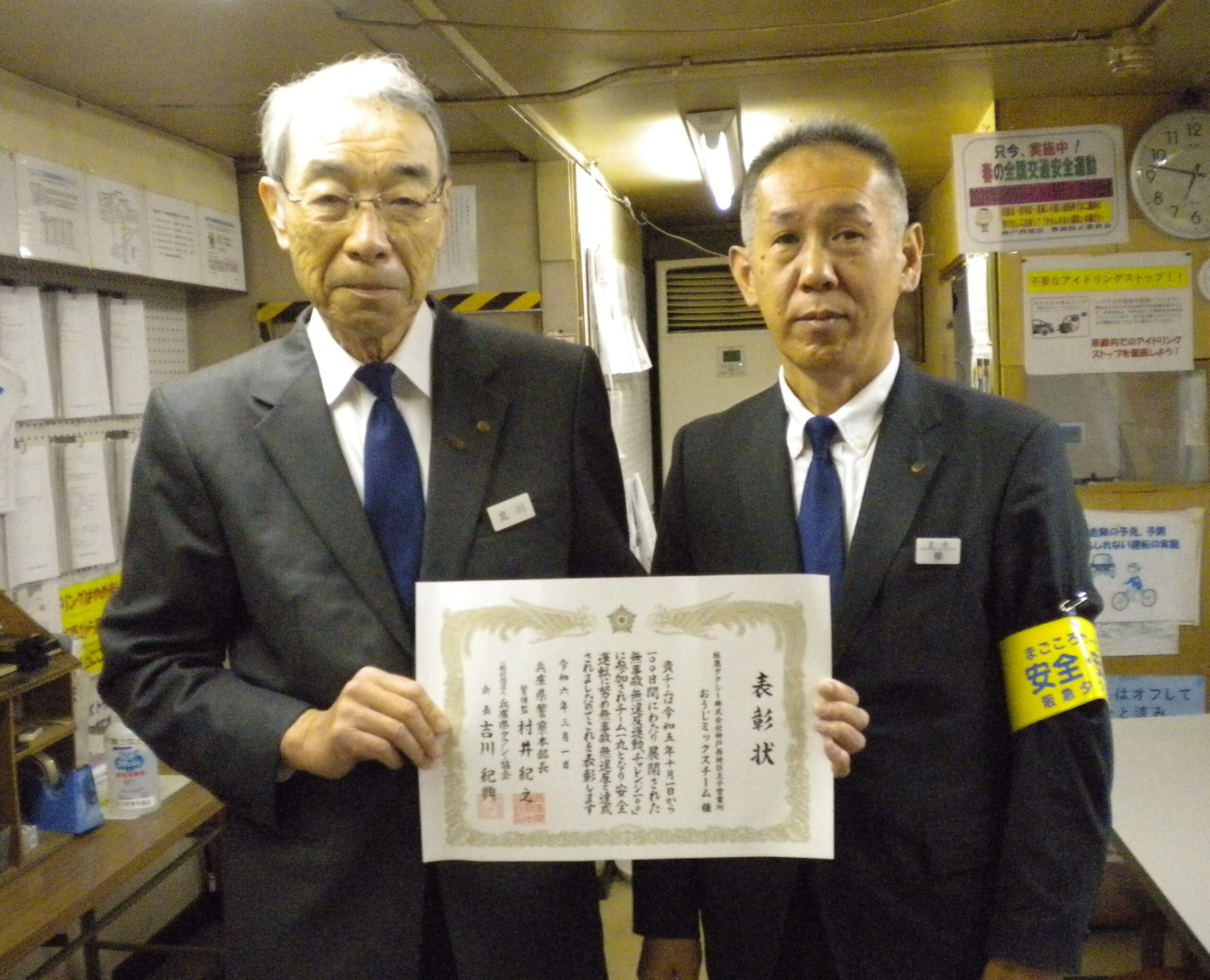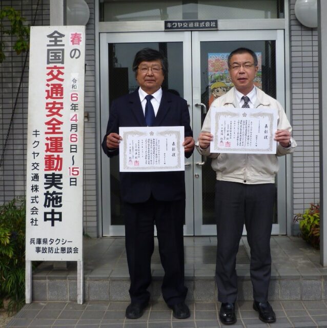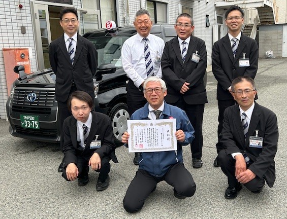 兵庫県タクシー協会では、県内事業者にて参加チーム(10人で1チーム)を編成し、積極的に乗務員の皆さんの交通安全意識を高めることで交通安全活動の推進を図り、運動期間中、無事故・無違反を達成した事業者・チームを賞揚しております。